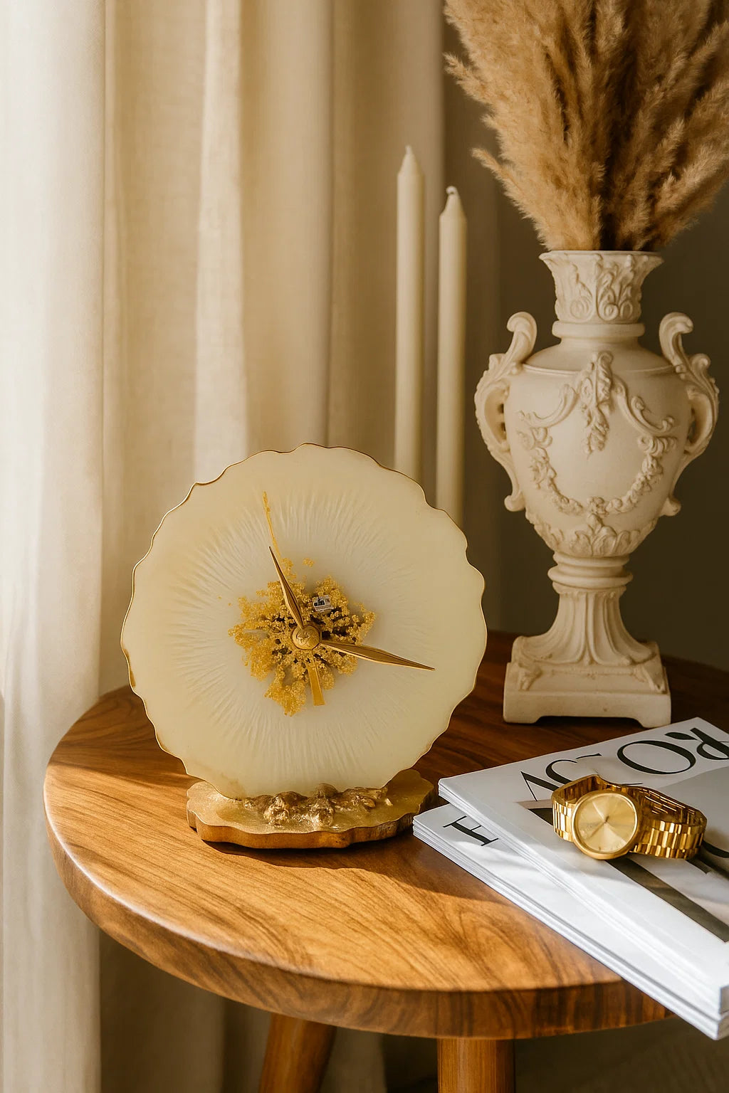 Crafted for those who see beauty in permanence, Heirloom is more than a desk clock; it's a statement of presence. With its deep-textured form and gilded gold detailing, it echoes the charm of vintage collectibles while fitting seamlessly into contemporary, artful spaces.